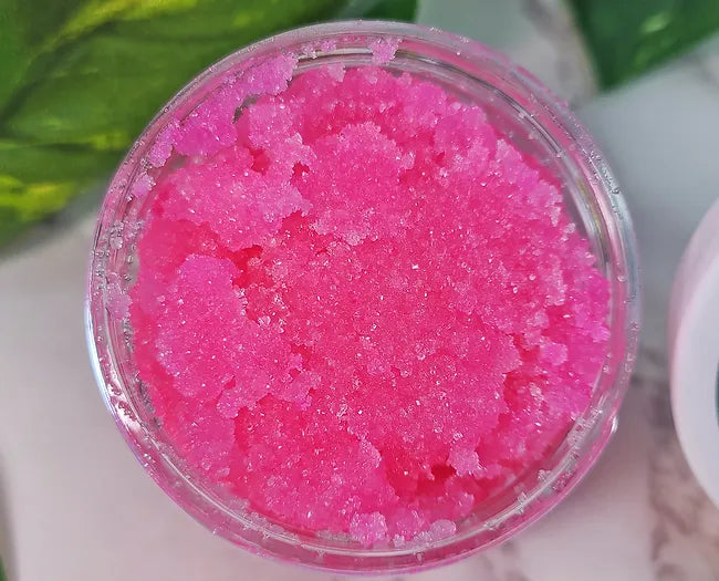 Lip Scrub: Sugar, Sweet Almond Oil, Stearic Acid, Flavor, Shea Butter, Vitamin E