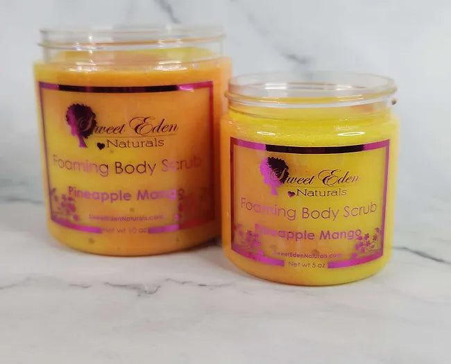 Our foaming scrubs include mild and gentle cleansers derived from coconuts and sugar. These cleansers are combined with our blend of high-quality sugar, oils, and other skin-loving ingredients to exfoliate, cleanse, and moisturize the skin. Our foaming scrubs will leave your skin smooth, soft, and supple.