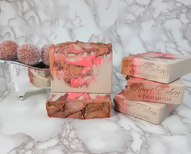 Our soaps are all made in small batches by cold process and are cut by hand. They produce a ton of rich, creamy lather that will leave your skin clean, silky, and soft.