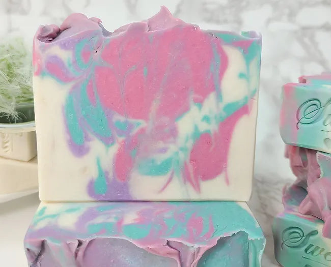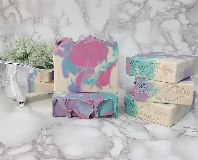 Our soaps are all made in small batches by cold process and are cut by hand. They produce a ton of rich, creamy lather that will leave your skin clean, silky, and soft.